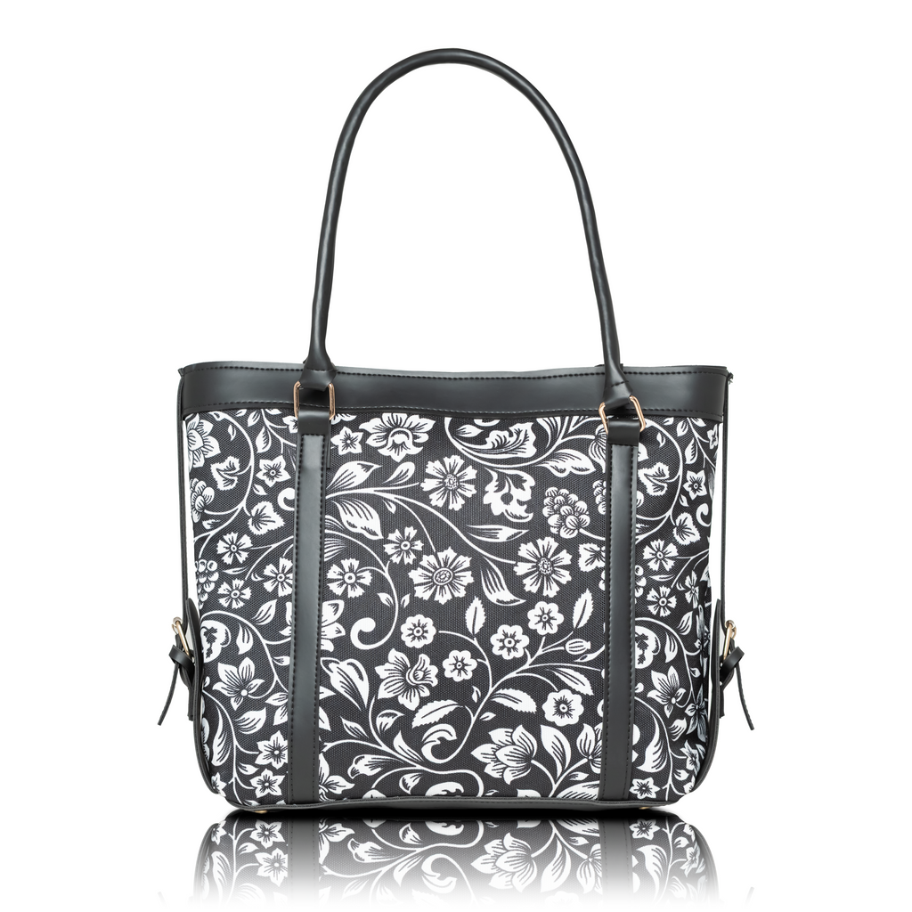 Timeless and composed, Noira embodies the art of quiet sophistication. Its monochrome floral design — soft white blooms against a deep black base — evokes balance, grace, and confidence. Perfect for workdays or leisurely afternoons, it pairs practicality with an effortlessly elegant presence.