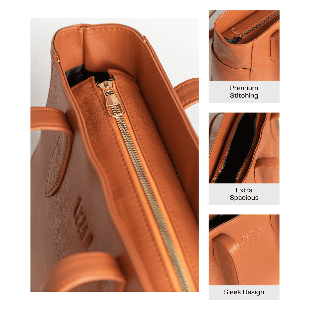 Thoughtfully designed with a roomy interior and organized pockets, Seren balances elegance with ease. The gentle gold accents and smooth zip closure add a polished touch, while its durable build ensures it stays by your side season after season.