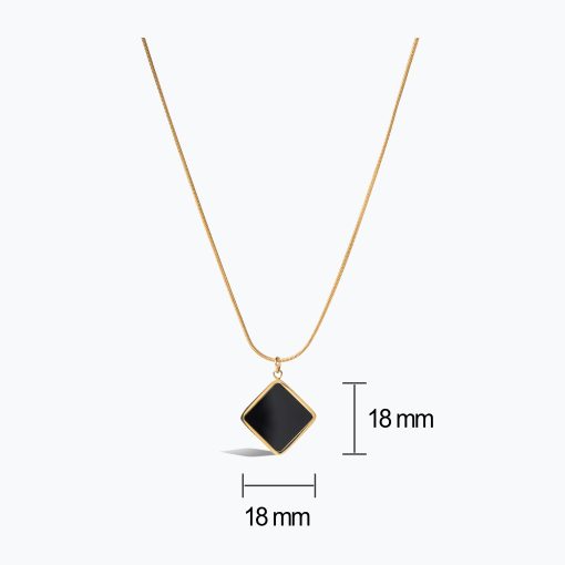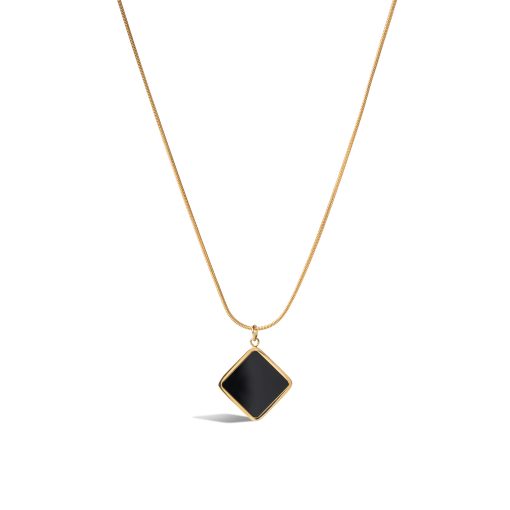 Bold and beautifully refined, Noir Mirage Necklace embodies the essence of modern minimalism. Its striking square pendant — a polished black shell set at a diamond angle — exudes sleek sophistication, framed by radiant gold for a captivating contrast. Designed to complement both casual and elegant looks, it’s a statement of quiet confidence and timeless allure.