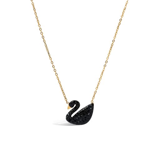 Elegant and mysterious, Nocturne Swan Necklace embodies the quiet allure of nightfall through its graceful form. The finely sculpted black swan pendant, adorned with shimmering black crystals, glides effortlessly against a radiant golden chain — a symbol of elegance, strength, and transformation. Refined yet striking, it’s a piece that adds instant sophistication to any ensemble.