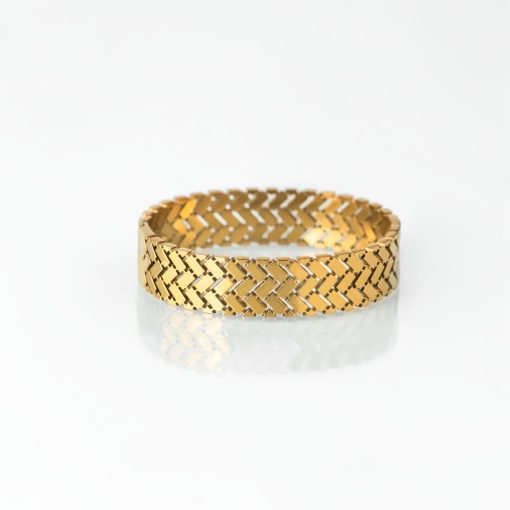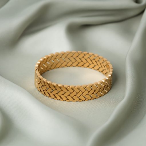 Striking and refined, Aurion Gold Cuff embodies the perfect fusion of strength and elegance. Its bold mesh-inspired design creates a captivating texture that catches the light beautifully, adding instant sophistication to any outfit. Wide and radiant, it’s a statement piece that transitions effortlessly from daytime polish to evening allure.
